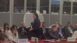 Президенттик аппарат башчысынын орун басары М.Карыбаева К.Батыровго сөз берилгенде залдан чыгып кетти