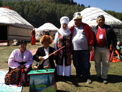 : Китепканачы А.Акматова америкалык үй-бүлөгө кийизден жасалган баалуу белек тартуулаган