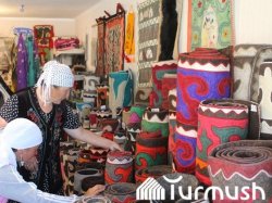 Ак-суулук мугалим балдарга кийиз жасоону, таш бетине сайма чеккенди үйрөтүүдө