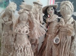 : Аравандык Т.Султанова чама менен кездемеге сүрөт тартып, мүшөктүн жиптеринен куурчактарды жасайт