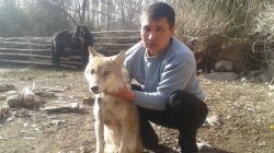 Ала-букалык С.Дуулатов аңчылыкка чыгаруу үчүн эки карышкыр багып жатат