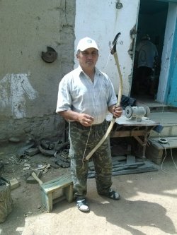 Житель Тона Б.Акунов изготавливает луки для стрельбы стоимостью 25 тыс. сомов