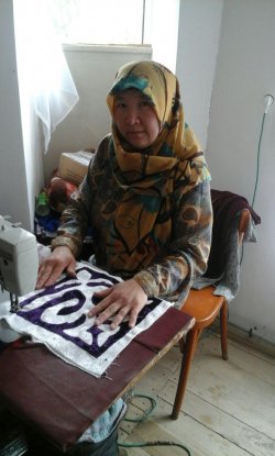 Жительница Чон-Алайского района Ш.Усонова вышивает узоры на сувенирах и сумках