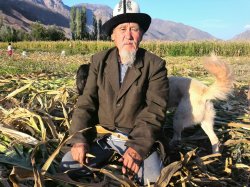 Житель Кара-Куля тыловик ВОВ Б.Кудайназаров выращивает кукурузу