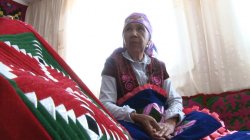 Жительница села Кара-Ой Таласского района А.Медетбекова шьет ковры и разные предметы из войлока