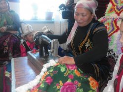 Жительница села Омуралиева Таласского района шьет национальные изделия ручной работы