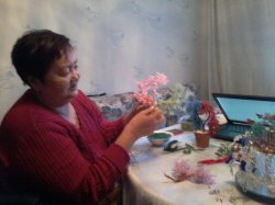 Жительница города Кара-Куль, которая лишилась обеих ног, вяжет, вышивает, занимается бисероплетением и пишет стихи